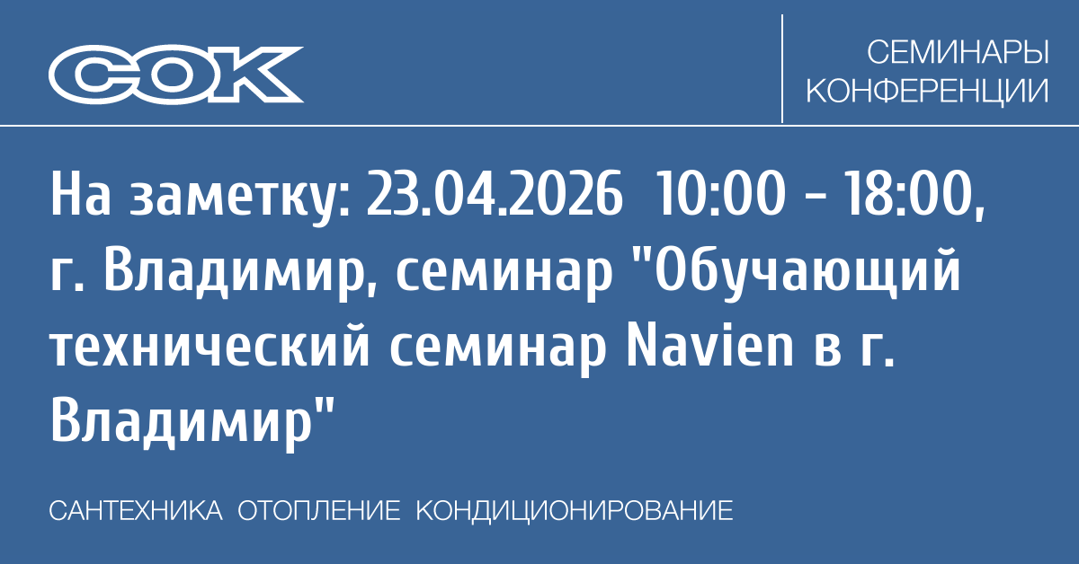 Семинар: Обучающий технический семинар Navien в г. Владимир