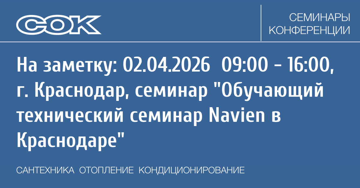 - 02.04.2026 09:00 - 16:00 Семинар Обучающий технический семинар Navien в Краснодаре