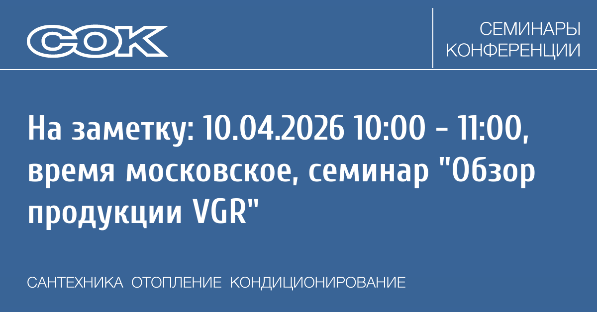 - 10.04.2026 10:00 - 11:00 Вебинар Обзор продукции VGR