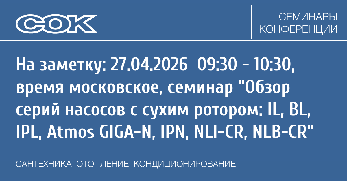 Вебинар: Обзор серий насосов с сухим ротором: IL, BL, IPL, Atmos GIGA-N, IPN, NLI-CR, NLB-CR