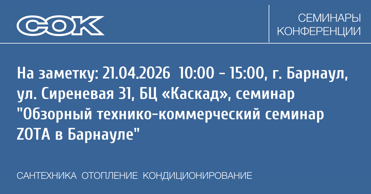 Семинар: Обзорный технико-коммерческий семинар ZOTA в Барнауле