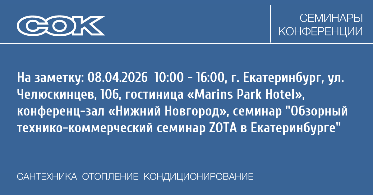 Семинар: Обзорный технико-коммерческий семинар ZOTA в Екатеринбурге