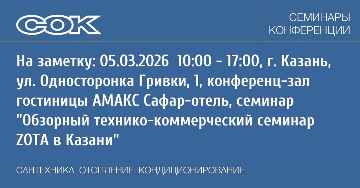 - 05.03.2026 10:00 - 17:00 Семинар Обзорный технико-коммерческий семинар ZOTA в Казани