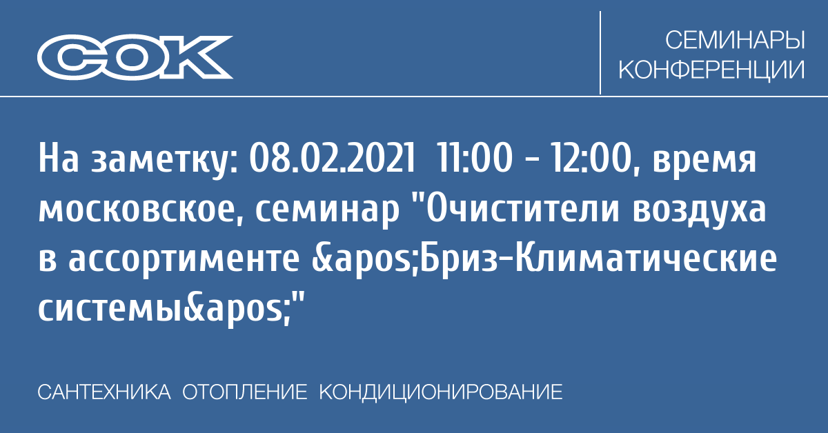 Webinar: Очистители воздуха в ассортименте 'Бриз-Климатические системы'