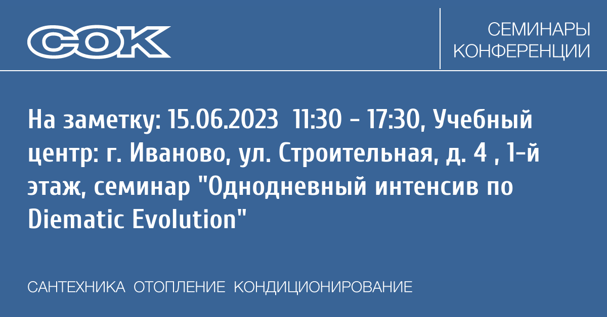 Учебный центр De Dietrich приглашает вас на однодневный интенсив по Diematic Evolution в г. Иваново.