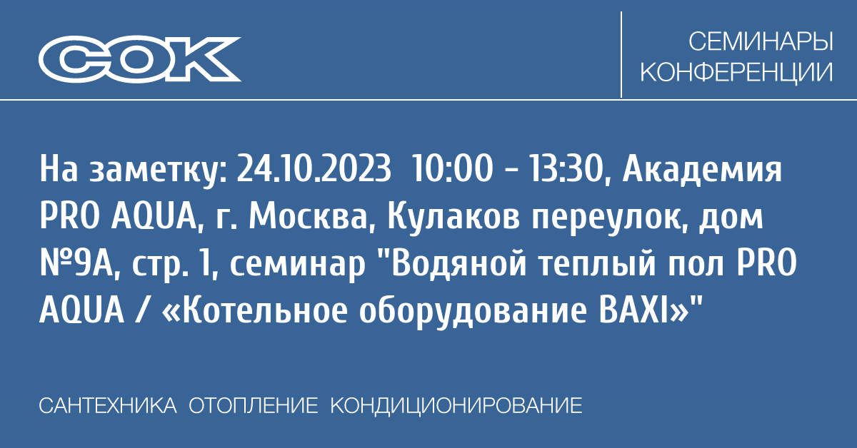 Семинар: Водяной теплый пол PRO AQUA / «Котельное оборудование BAXI»