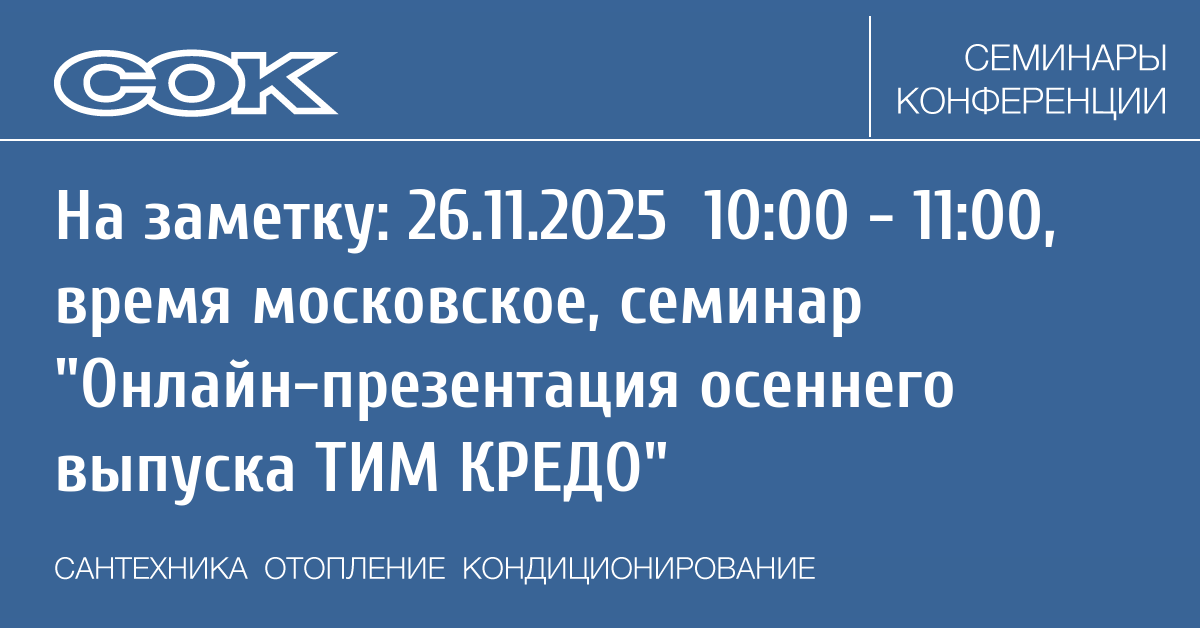 - 09.02.2026 09:30 - 10:30 Вебинар Установки отвода стоков