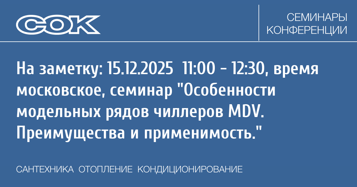 - 15.12.2025 12:30 - 14:30 Webinar Подбор чиллеров MDV и сопутствующего оборудования