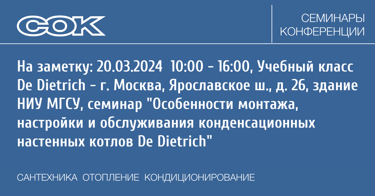 Seminar: Особенности монтажа, настройки и обслуживания конденсационных настенных котлов De Dietrich