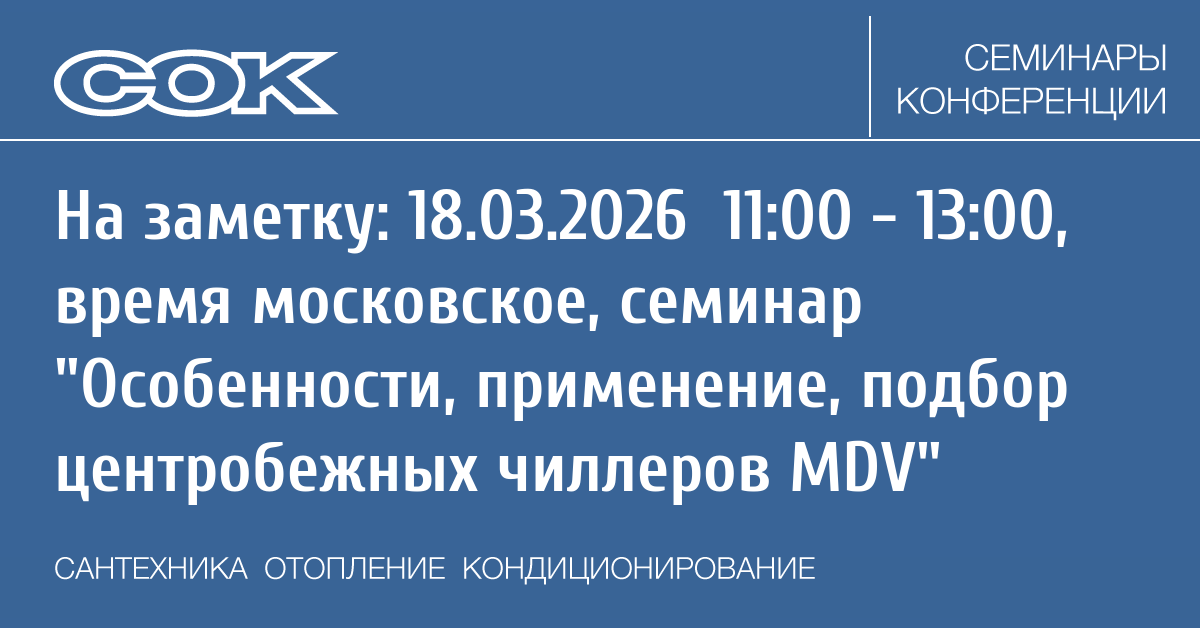 Семинар поможет проектировщикам и инженерам принимать обоснованные решения при создании крупных систем кондиционирования и охлаждения.