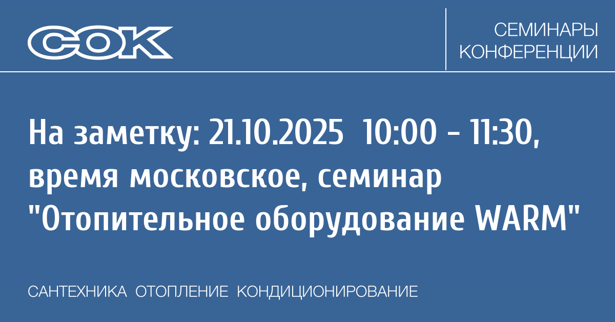 - 21.10.2025 10:00 - 11:30 Webinar Отопительное оборудование WARM