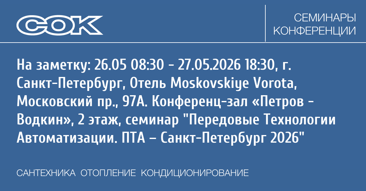 26–27 мая 2026 года в Санкт-Петербурге состоится 17-я специализированная конференция «Передовые Технологии Автоматизации. ПТА — Санкт-Петербург 2026».