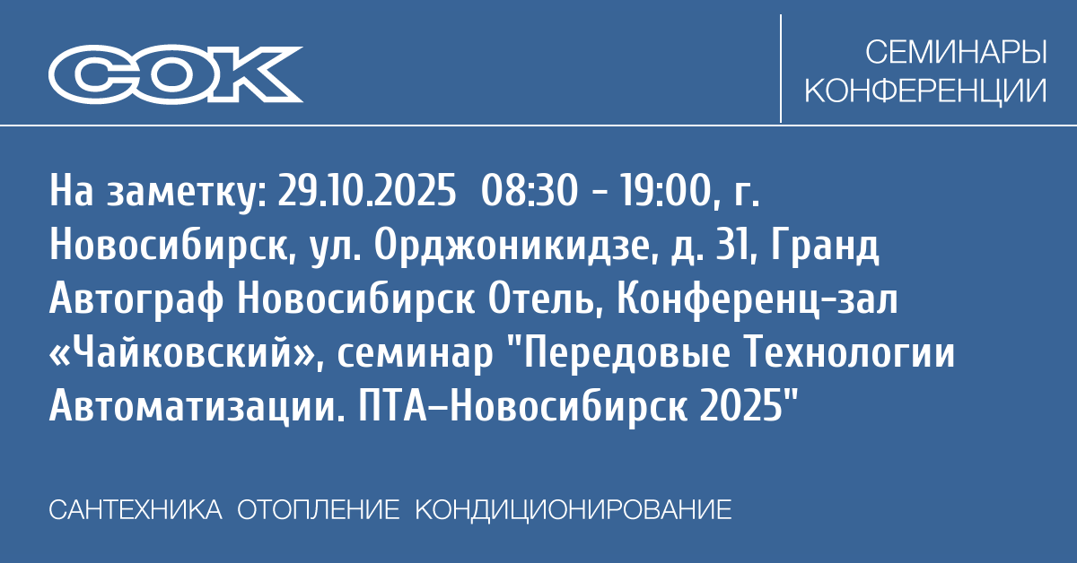 29 октября 2025 года состоится 15-я специализированная конференция «Передовые Технологии Автоматизации. ПТА-Новосибирск 2025».