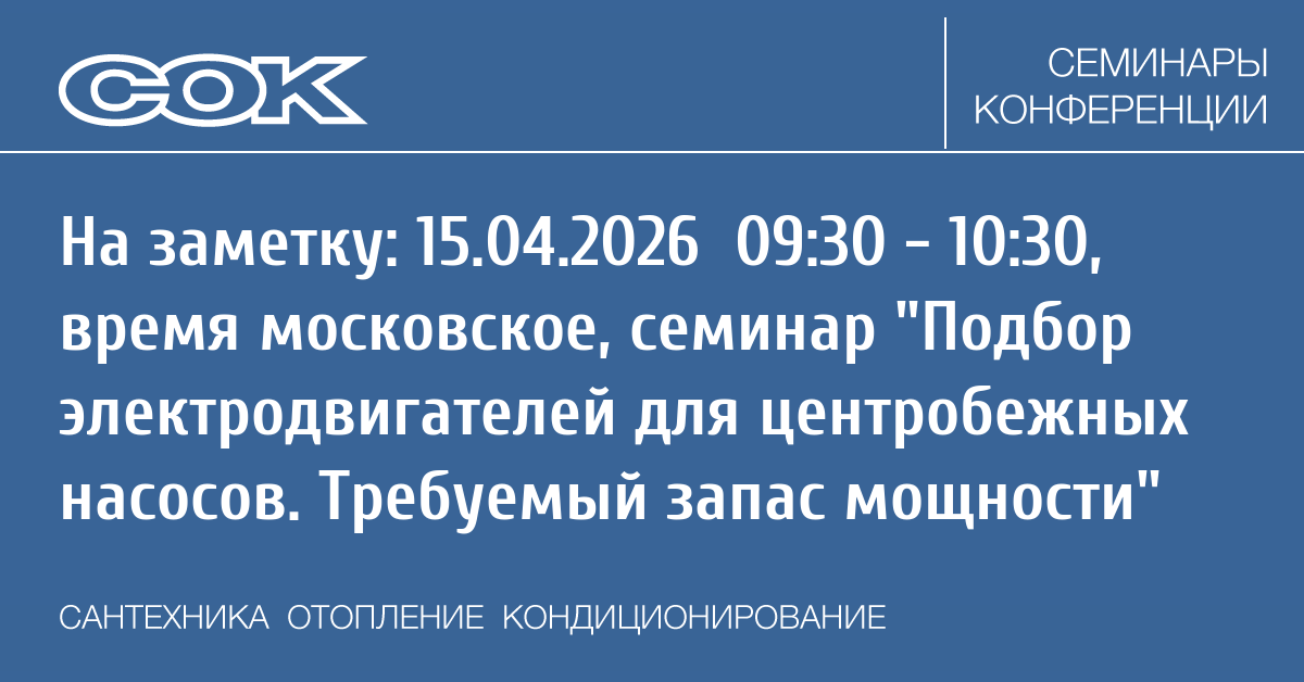 - 07.04.2026 09:30 - 10:30 Вебинар Особенности подбора герметичных канализационных насосных установок