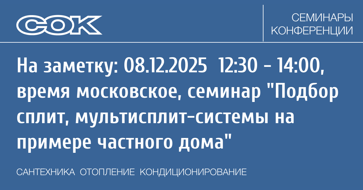 - 08.12.2025 12:30 - 14:00 Webinar Подбор сплит, мультисплит-системы на примере частного дома