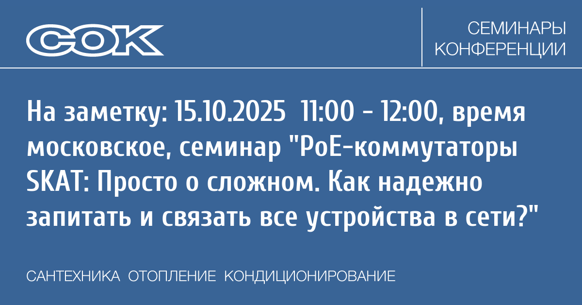- 14.10.2025 11:00 - 12:00 Webinar SKAT-UPS, или надежная защита при перебоях питания. Комплексные решения на базе SKAT-UPS