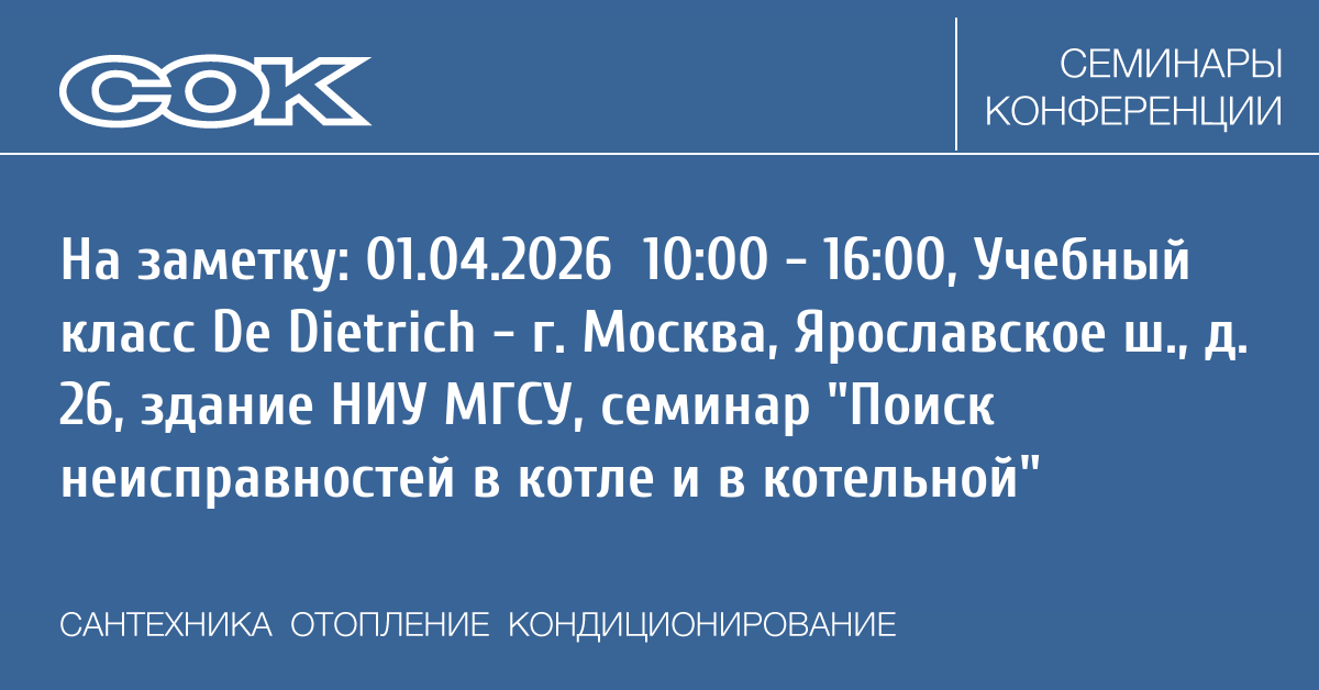 De Dietrich организует практические занятия в Учебном классе (г. Москва, Ярославское ш., д. 26, здание НИУ МГСУ) по теме: