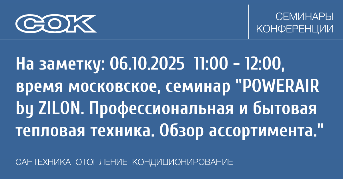 - 06.10.2025 11:00 - 12:00 Webinar POWERAIR by ZILON. Профессиональная и бытовая тепловая техника. Обзор ассортимента.