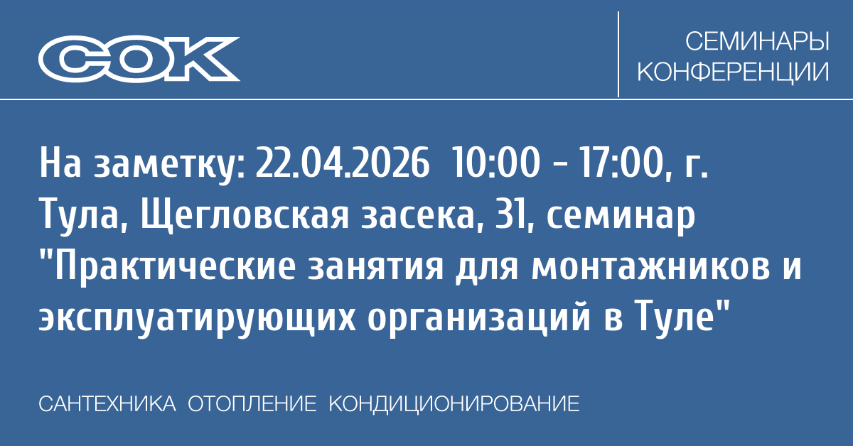 Семинар: Практические занятия для монтажников и эксплуатирующих организаций в Туле