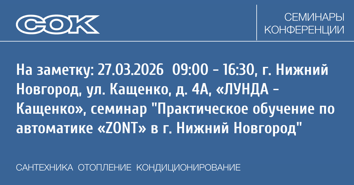 Семинар: Практическое обучение по автоматике «ZONT» в г. Нижний Новгород