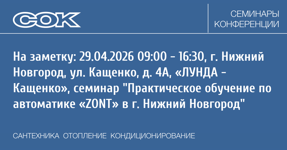 Семинар: Практическое обучение по автоматике «ZONT» в г. Нижний Новгород