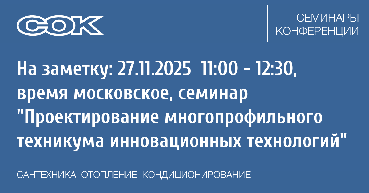 - 09.02.2026 09:30 - 10:30 Вебинар Установки отвода стоков