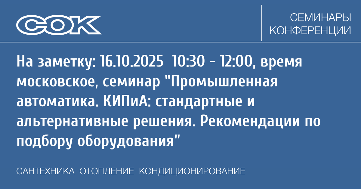 - 14.10.2025 09:30 - 10:30 Webinar Циркуляция ГВС в ИТП и котельных