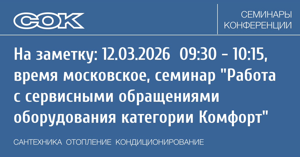 - 12.03.2026 09:30 - 10:15 Вебинар Работа с сервисными обращениями оборудования категории Комфорт