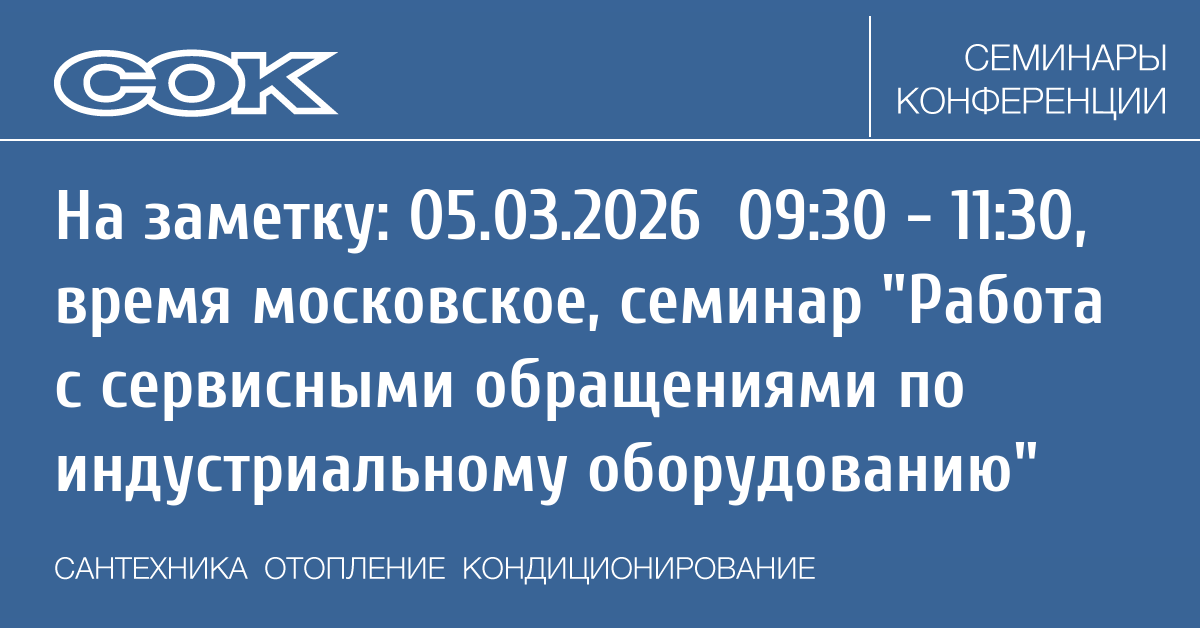 - 05.03.2026 09:30 - 11:30 Вебинар Работа с сервисными обращениями по индустриальному оборудованию