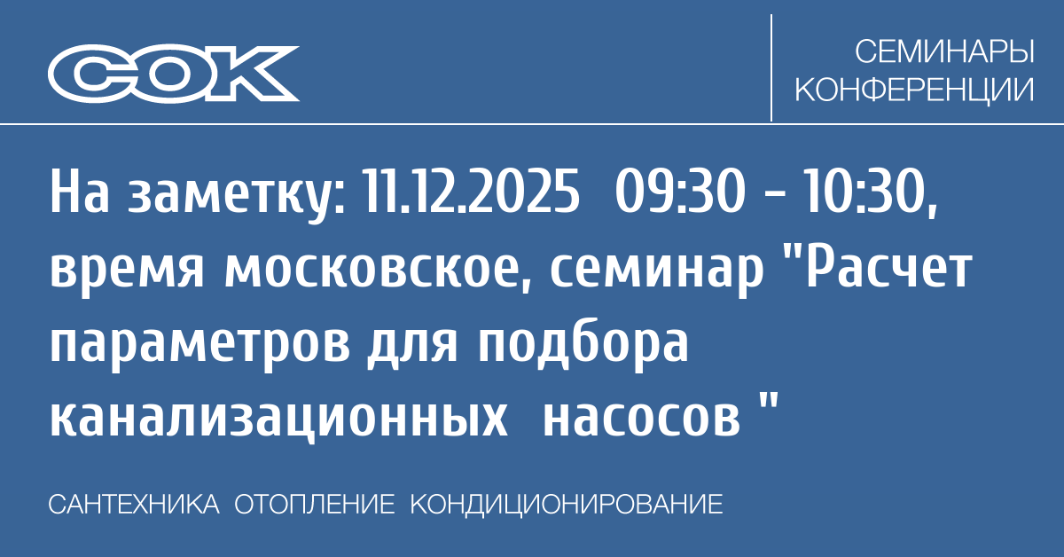 - 11.12.2025 09:30 - 10:30 Webinar Расчет параметров для подбора канализационных насосов