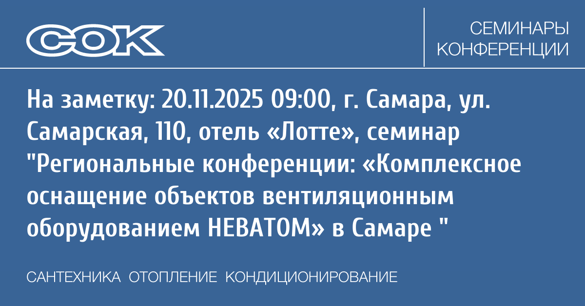 Seminar: Региональные конференции: «Комплексное оснащение объектов вентиляционным оборудованием НЕВАТОМ» в Самаре