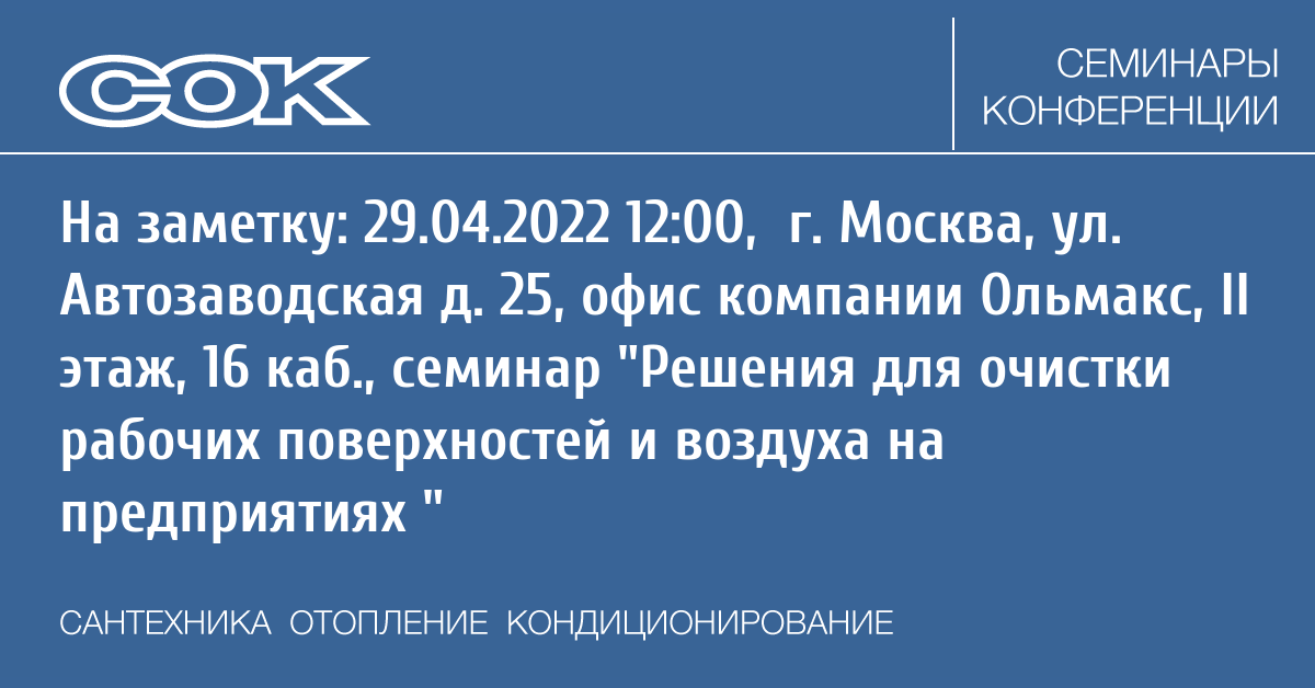 Семинар: Решения для очистки рабочих поверхностей и воздуха на предприятиях