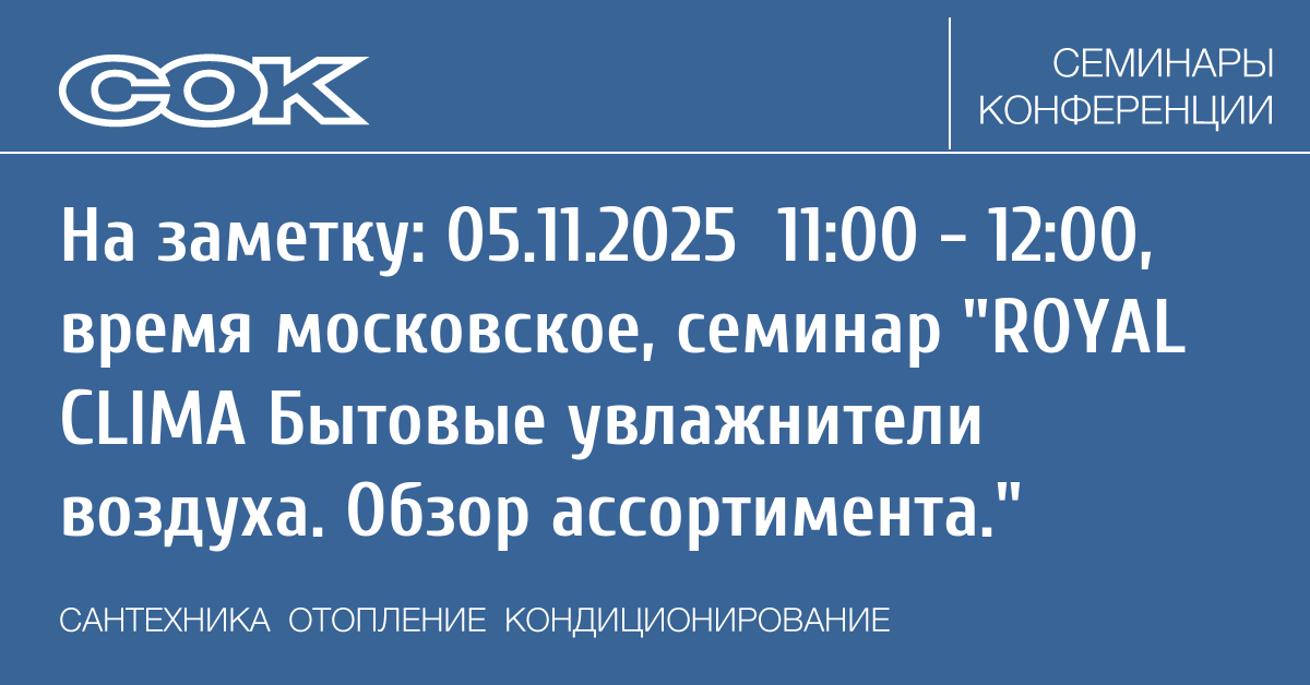 Webinar: ROYAL CLIMA Бытовые увлажнители воздуха. Обзор ассортимента.
