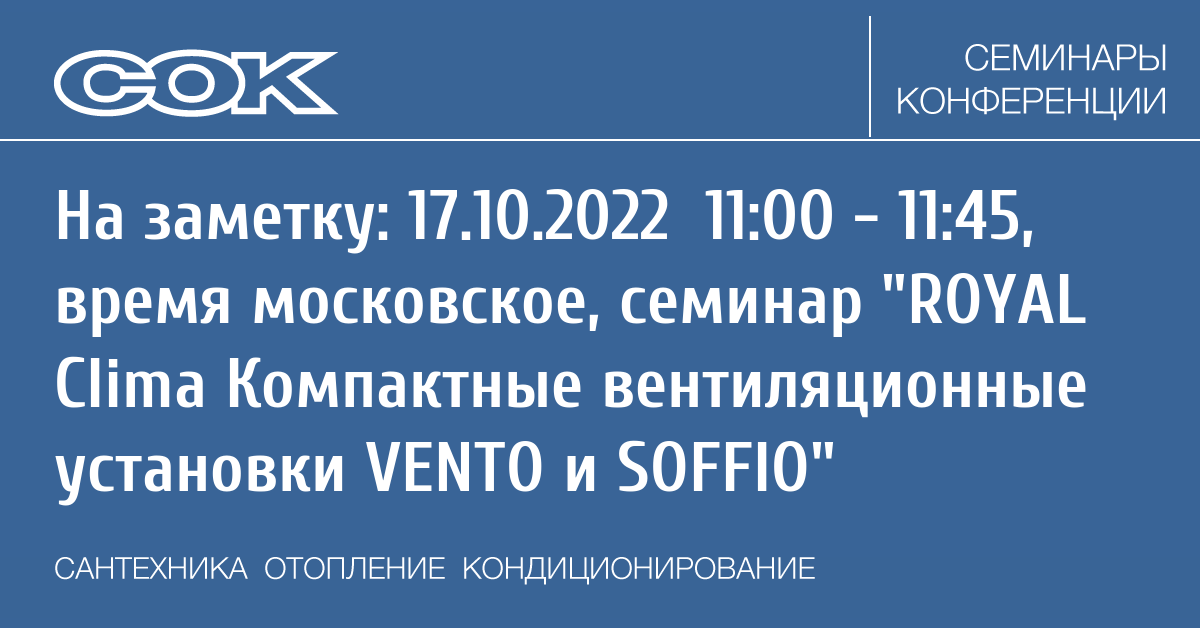 Вебинар: ROYAL Clima Компактные вентиляционные установки VENTO и SOFFIO