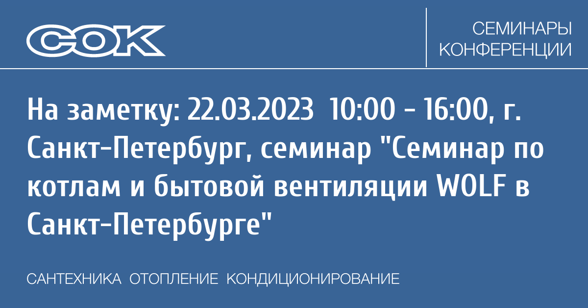 Семинар: Семинар по котлам и бытовой вентиляции WOLF в Санкт-Петербурге