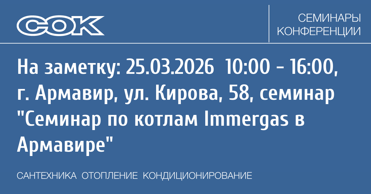 Семинар: Семинар по котлам Immergas в Армавире