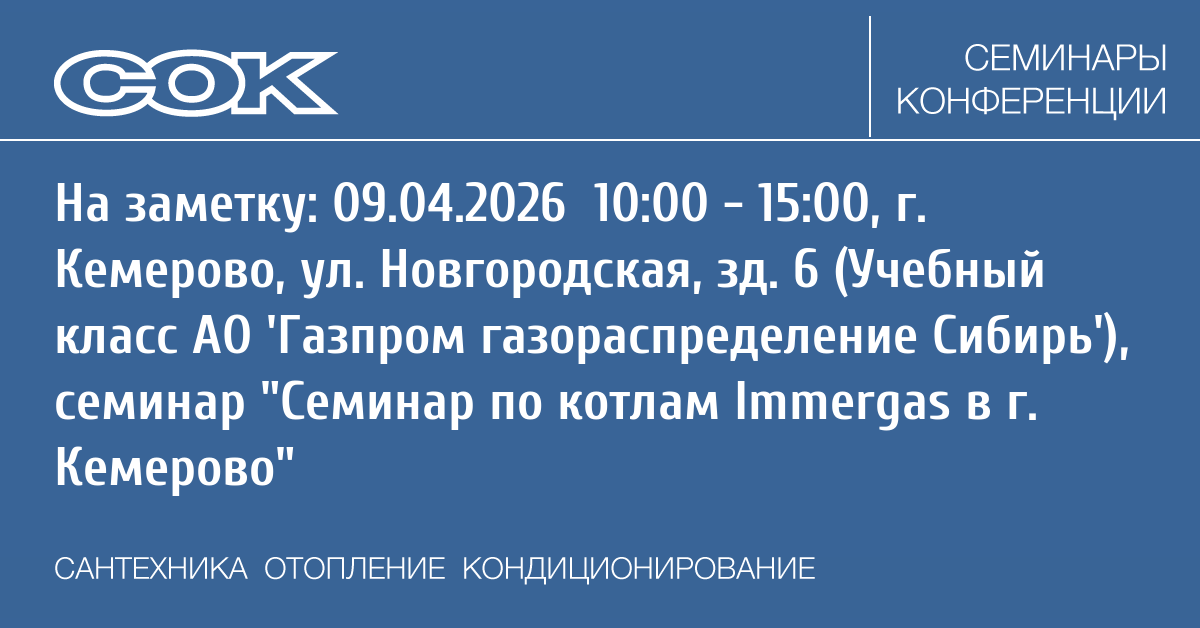 Семинар: Семинар по котлам Immergas в г. Кемерово