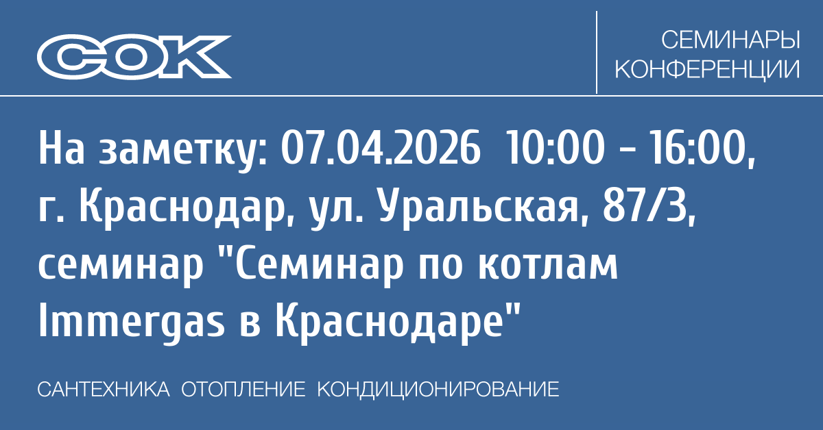 Семинар: Семинар по котлам Immergas в Краснодаре
