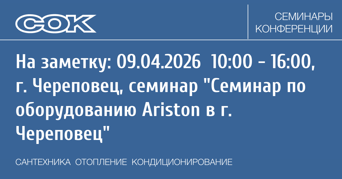 Семинар: Семинар по оборудованию Ariston в г. Череповец