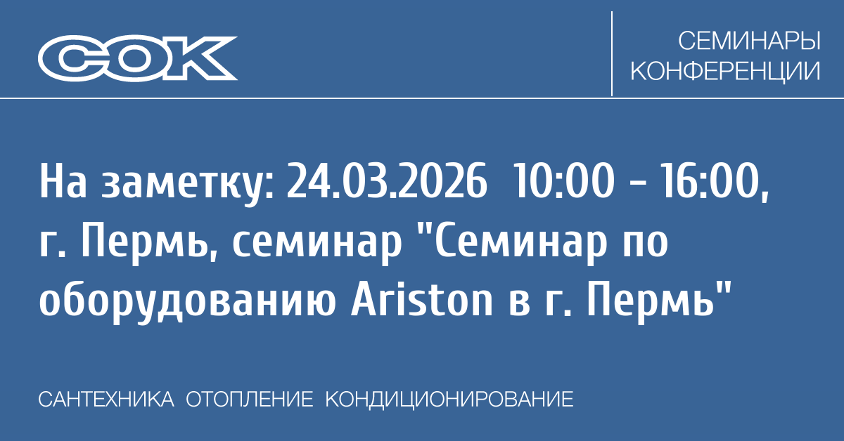 Семинар: Семинар по оборудованию Ariston в г. Пермь