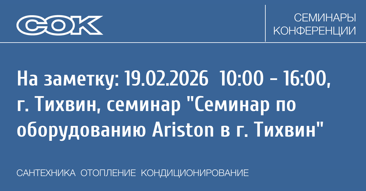 Семинар: Семинар по оборудованию Ariston в г. Тихвин