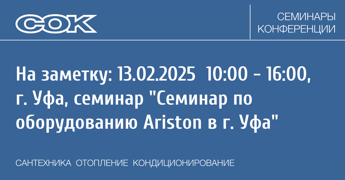 Seminar: Семинар по оборудованию Ariston в г. Уфа