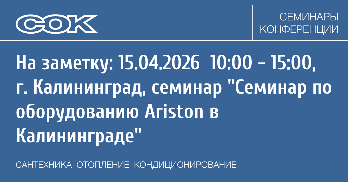Семинар: Семинар по оборудованию Ariston в Калининграде