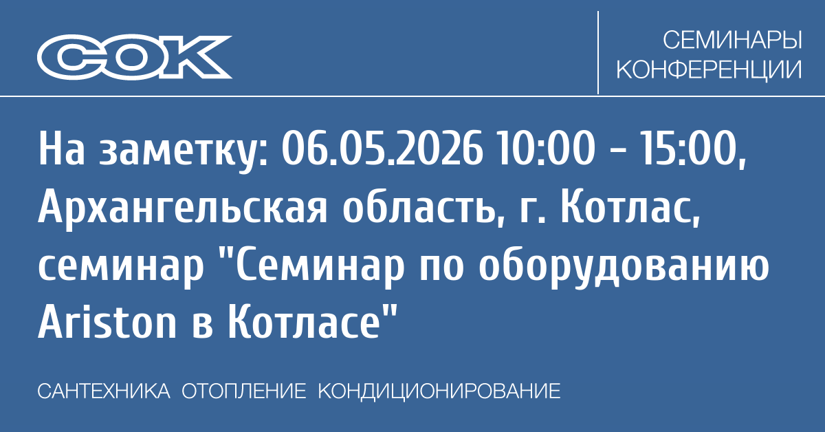 Ariston Thermo Group проводит бесплатный семинар по монтажу и обслуживанию систем отопления и горячего водоснабжения в Котласе по оборудованию: