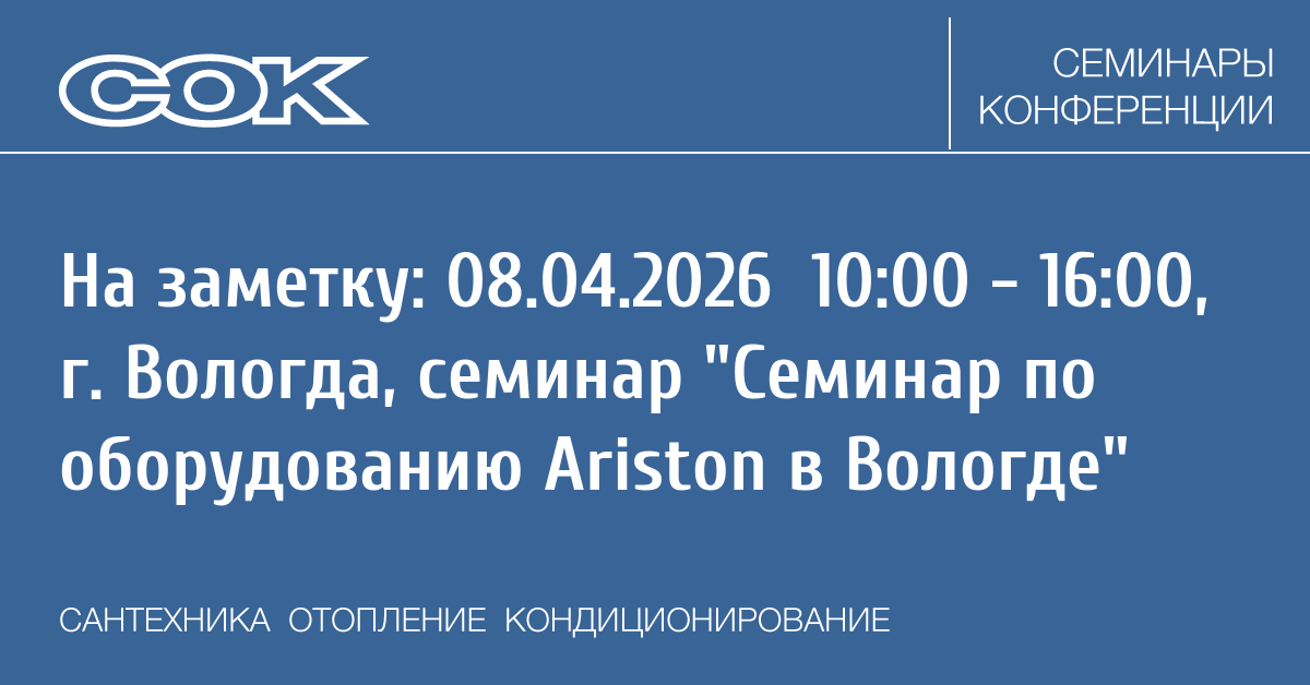 Семинар: Семинар по оборудованию Ariston в Вологде