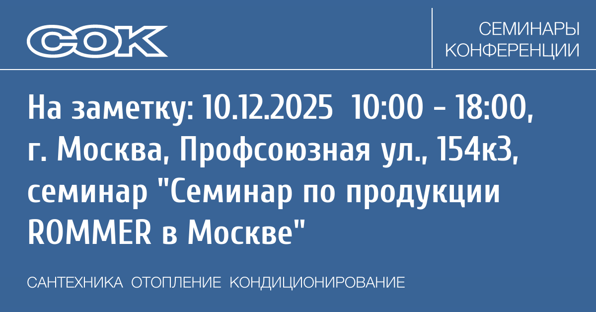 - 10.12.2025 10:00 - 18:00 Seminar Семинар по продукции ROMMER в Москве
