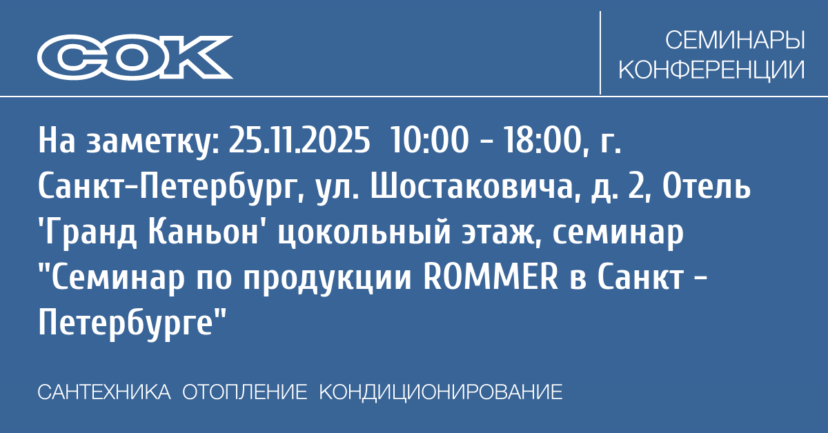 Семинар: Семинар по продукции ROMMER в Санкт - Петербурге