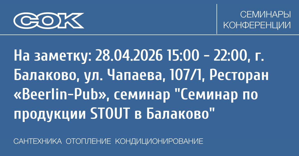 Семинар: Семинар по продукции STOUT в Балаково
