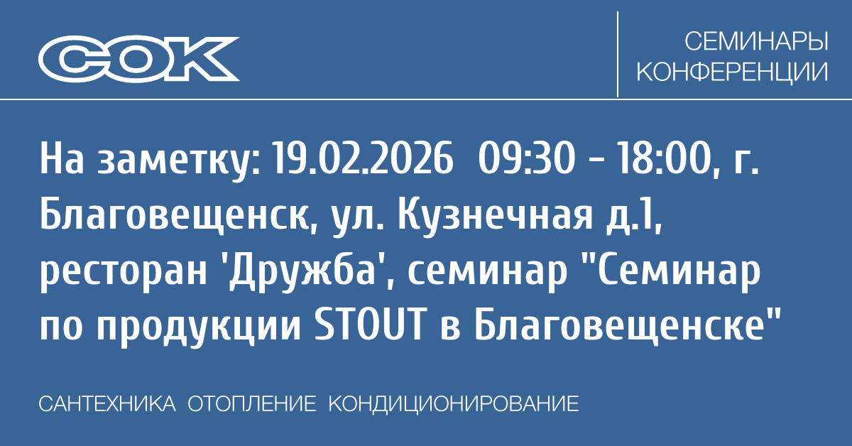 Семинар: Семинар по продукции STOUT в Благовещенске