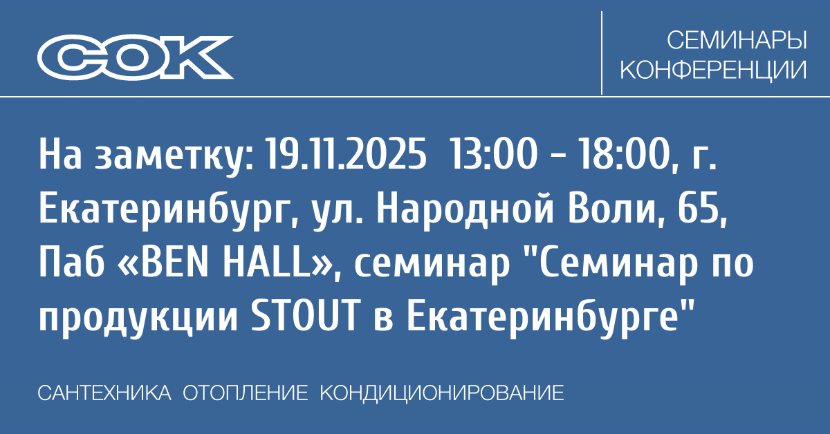 Семинар: Семинар по продукции STOUT в Екатеринбурге